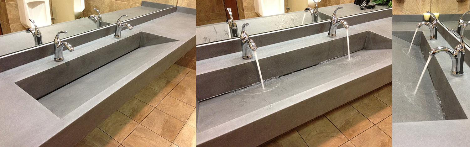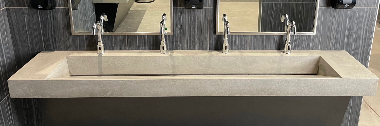 96" Wall Hung With 3 x 17" Concrete Ramp Sinks